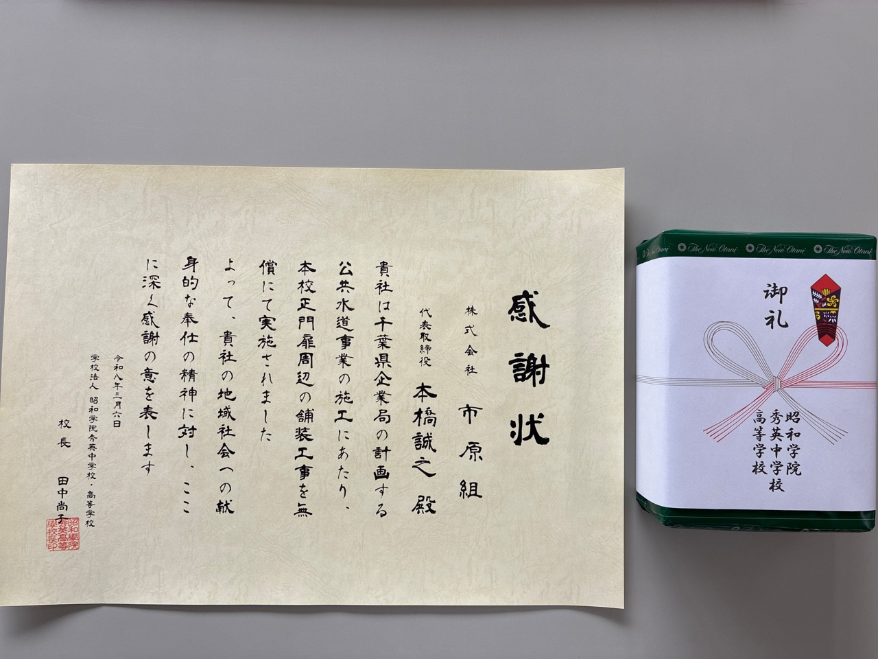 無償で新しくしたところ校長先生より感謝状を頂きました。( ´艸`)